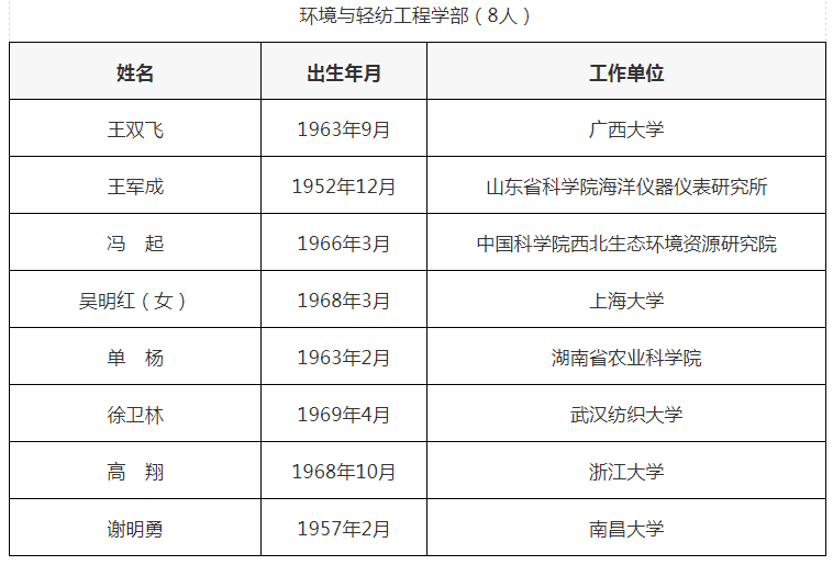 食品領域新增兩名院士,分別是湖南省農業科學院黨委副書記、院長單楊,和南昌大學食品科學與技術國家重點實驗室主任謝明勇教授。