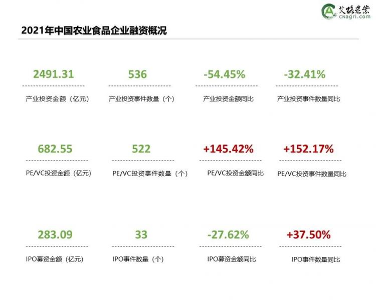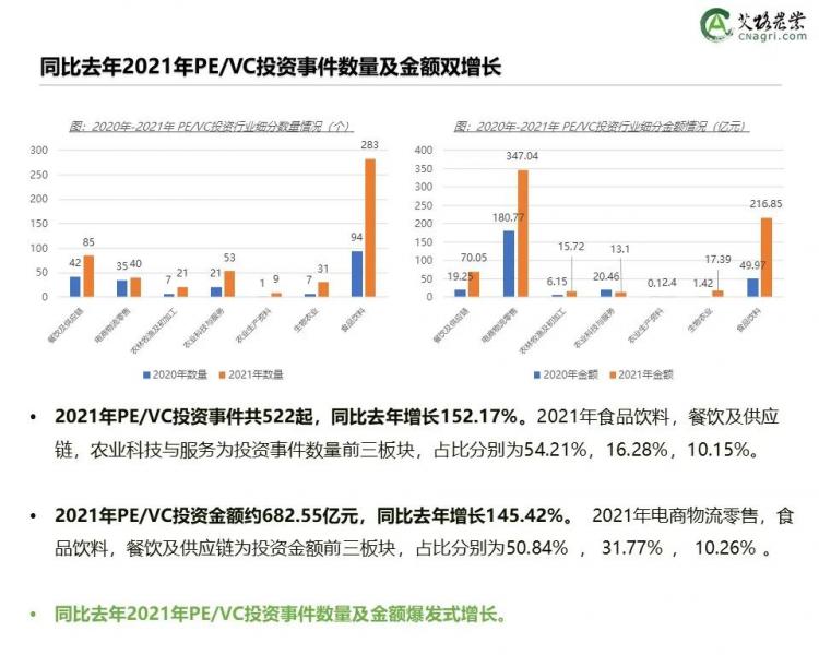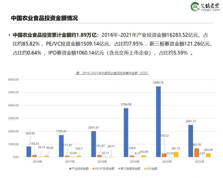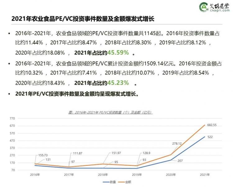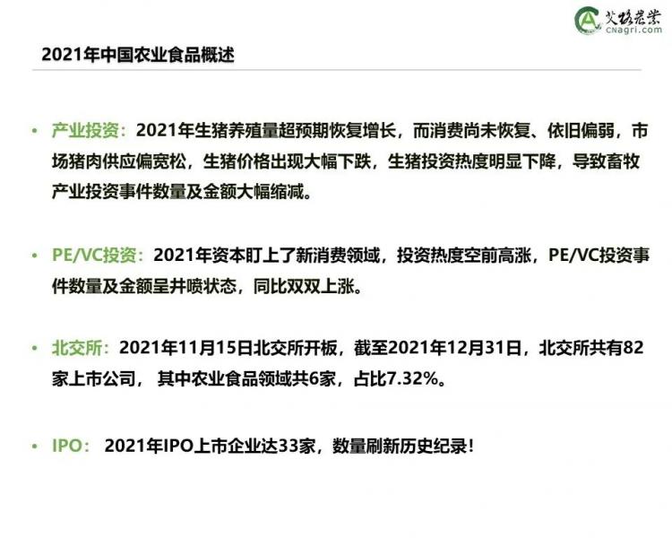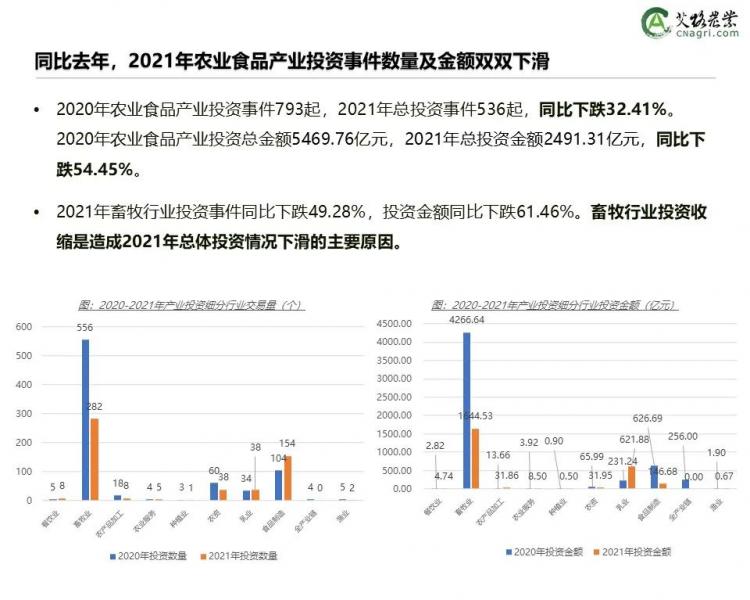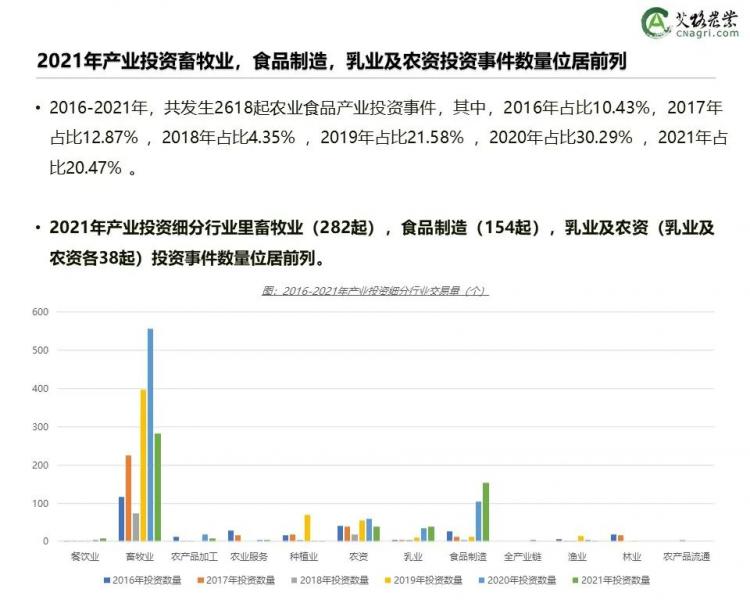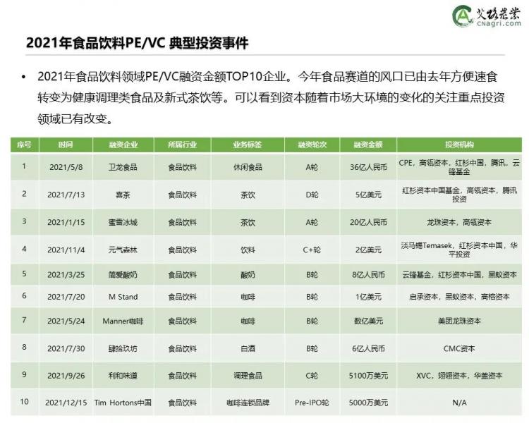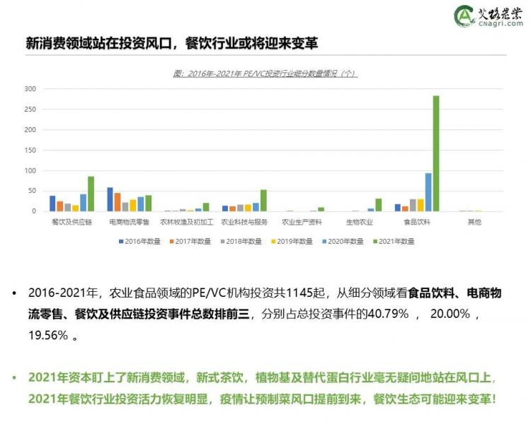 近日,《2021年中國農業食品投資年報》重磅出爐,年報顯示: