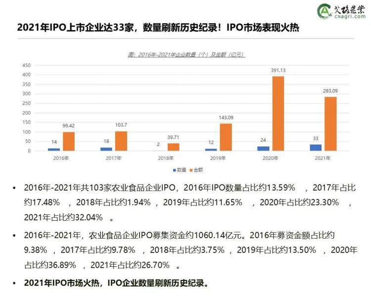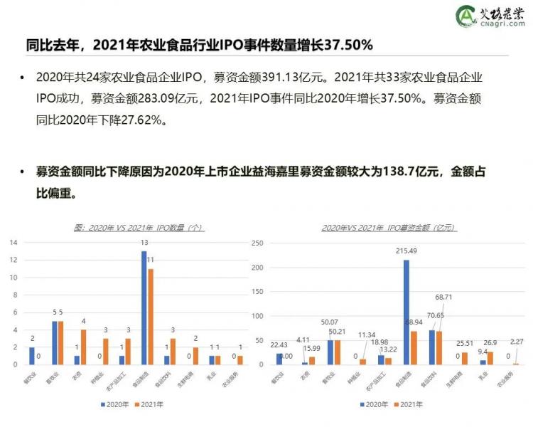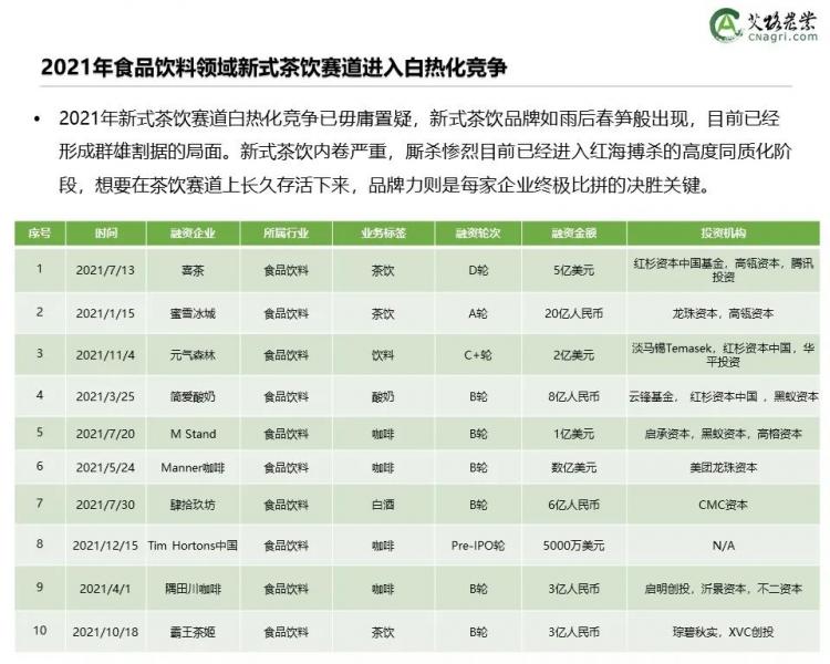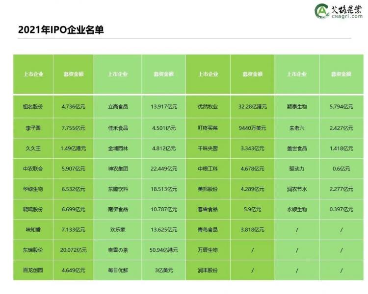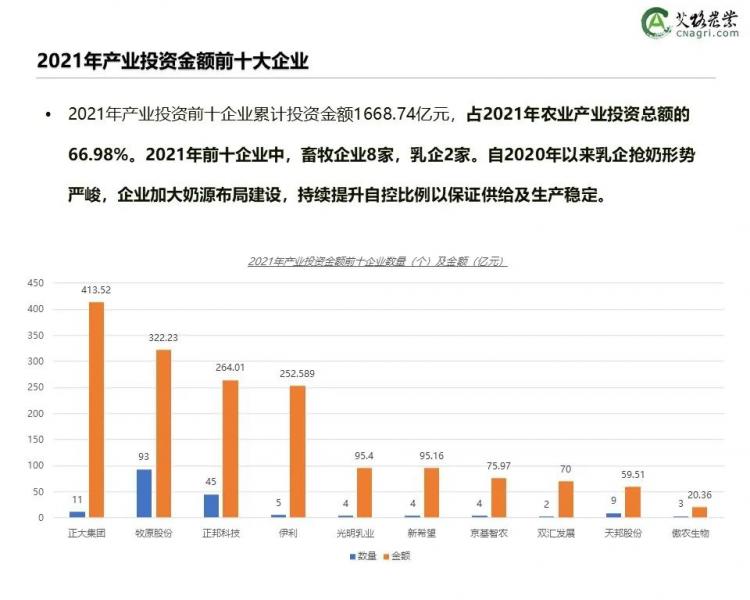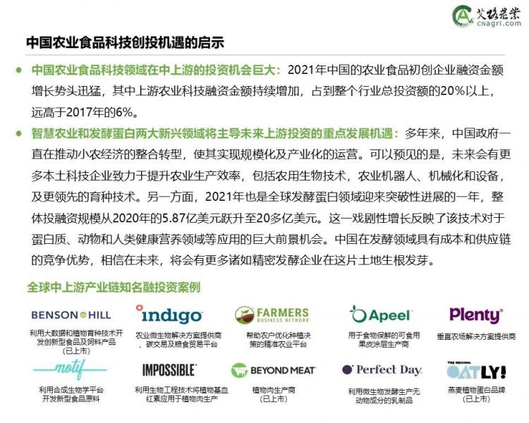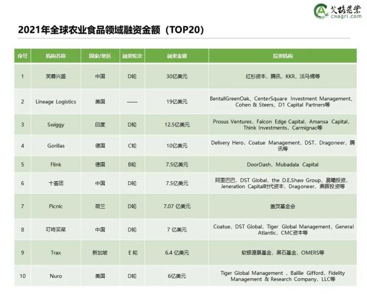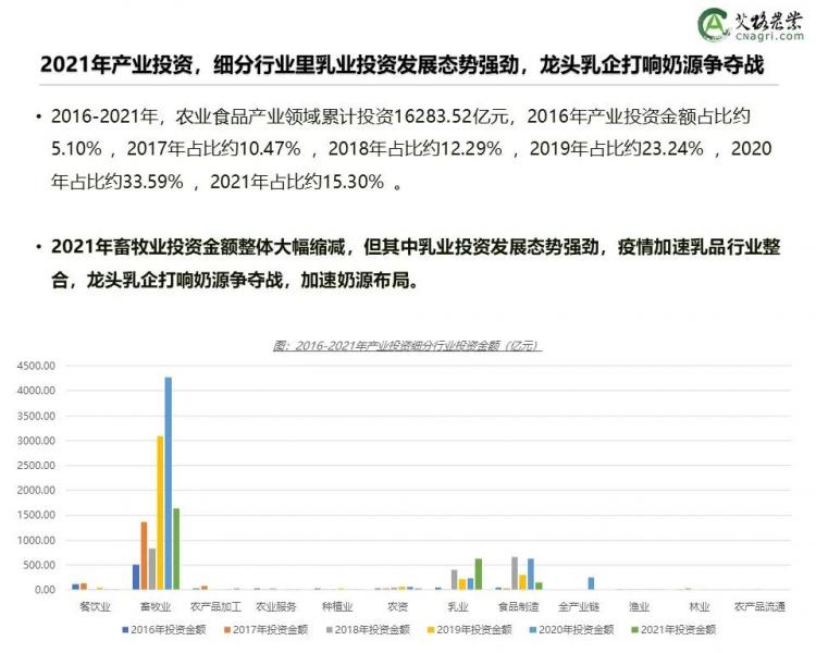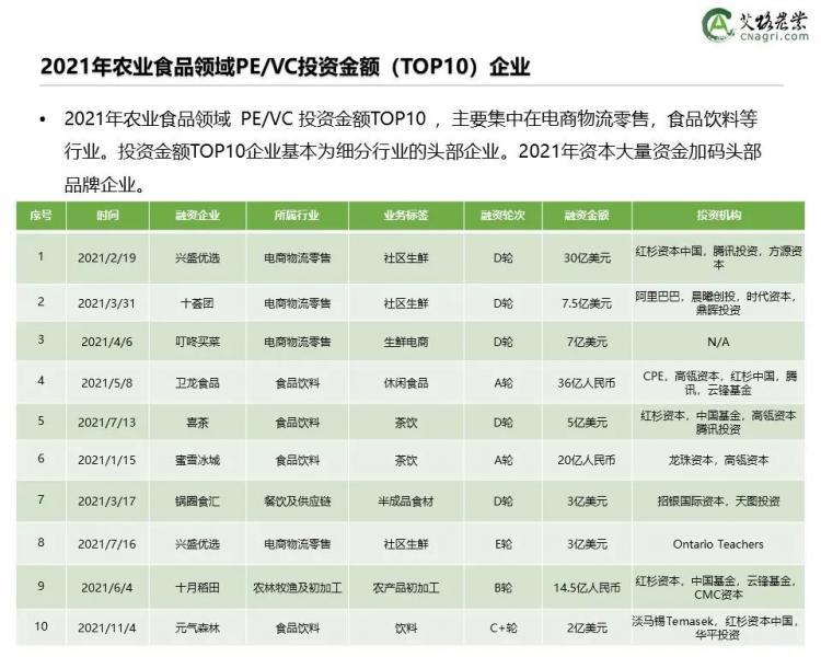 近日,《2021年中國農業食品投資年報》重磅出爐,年報顯示: