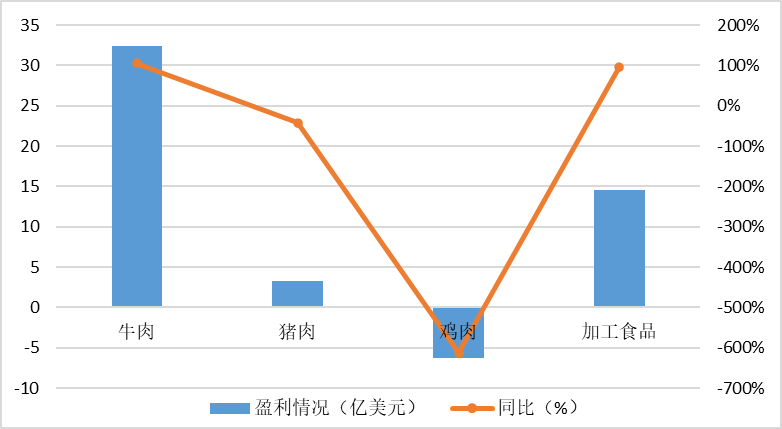 圖5 2021財年泰森食品四大核心業(yè)務(wù)盈利和同比變化情況