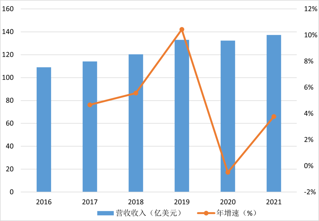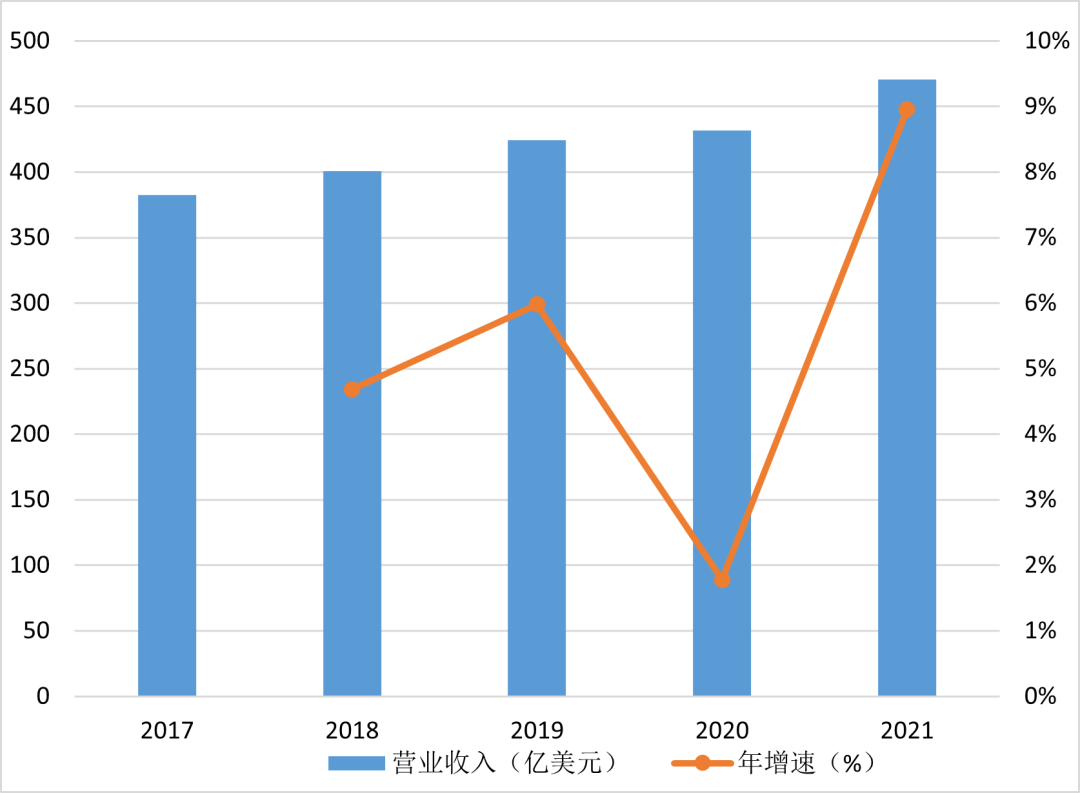 圖1 2017年—2021年泰森食品營業(yè)收入與增速變化情況