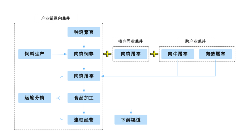 21世紀(jì)以來,泰森進(jìn)行了幾起具有戰(zhàn)略意義的大型并購,并購世界上最大的紅肉屠宰加工企業(yè)IBP、大型食品制造商Hillshire和Advance pierre的并購。具體來看,并購IBP使公司體量增大,成為橫跨雞肉、豬肉、牛肉屠宰加工的肉類供應(yīng)巨頭,也為其之后進(jìn)一步的并購擴(kuò)張埋下了伏筆;成功并購兩個大型加工食品品牌來鏈接泰森的傳統(tǒng)肉類供給產(chǎn)業(yè),使泰森真正開啟了從育種、供應(yīng)、加工到包裝的網(wǎng)狀產(chǎn)業(yè)鏈模式。目前,泰森的業(yè)務(wù)已經(jīng)成為位居世界前列的肉類供應(yīng)商、加工商,進(jìn)一步向食品制造全產(chǎn)業(yè)鏈領(lǐng)域進(jìn)軍,邁向綜合肉制品巨頭之路。