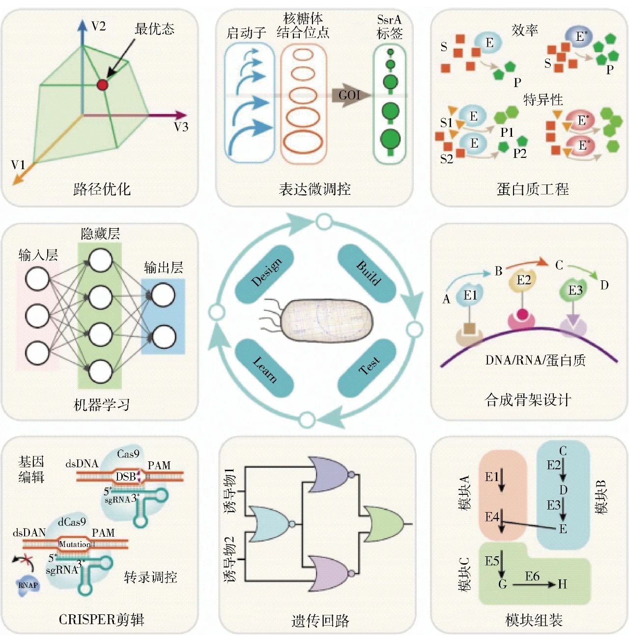 圖3 微生物細胞工廠的DBTL原則和技術策略