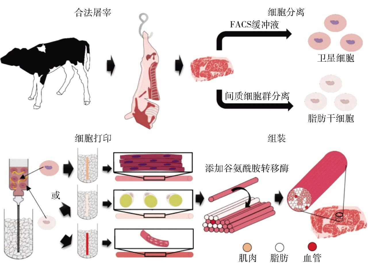 圖6 利用細胞培養和3D生物打印組裝的擬真整塊牛肉