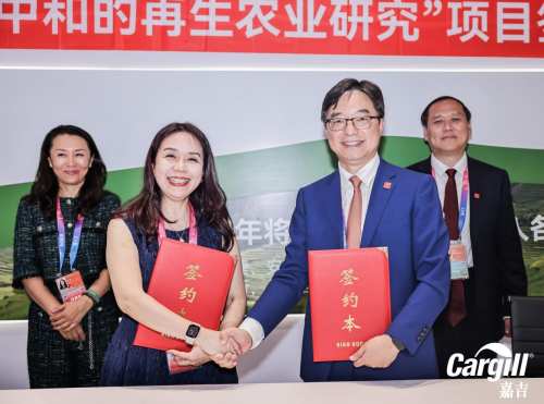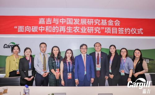 近日, 在第六屆中國國際進口博覽會(進博會)上,嘉吉公司與中國發展研究基金會(以下簡稱為基金會)正式簽署合作協議。雙方將啟動為期一年的再生農業研究與實踐項目,旨在推動中國農業實現綠色發展,助力國家實現碳中和目標。為此,嘉吉將捐贈100萬元人民幣,投入這一再生農業研究性項目的落地開展。