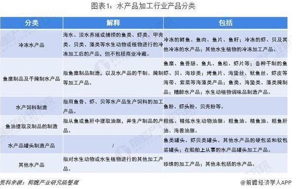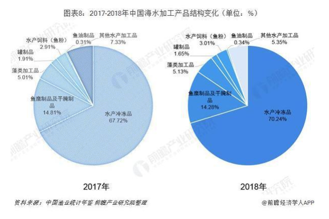 海水加工產品主要包括水產冷凍品、魚糜制品及干腌制品、藻類加工品、罐制品、水產飼料(魚粉)、魚油制品和其他水產加工品。