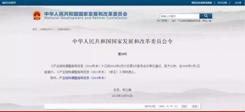 日前,國(guó)家發(fā)展改革委修訂發(fā)布了《產(chǎn)業(yè)結(jié)構(gòu)調(diào)整指導(dǎo)目錄(2019 年本)》(以下簡(jiǎn)稱《目錄》)。《目錄》自 2020 年 1 月 1 日起施行。