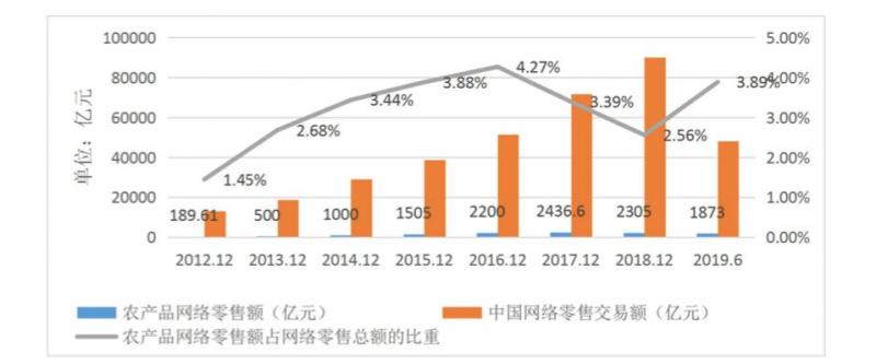 我國農產品網絡銷售額比重變化趨勢(摘自商務部報告)
