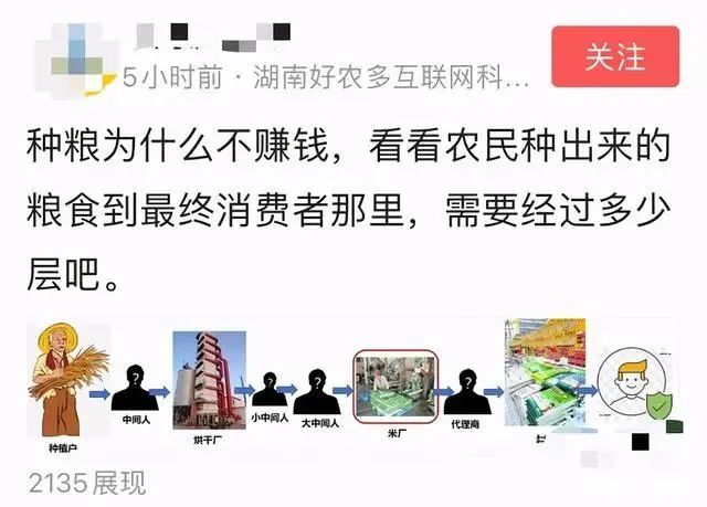 最近聽到一位專家的話,感觸特別深。他說,不是農(nóng)業(yè)不掙錢,而是農(nóng)民不賺錢。農(nóng)產(chǎn)品從田間地頭到消費者餐桌,要經(jīng)過層層中間環(huán)節(jié),市場上賣得再貴,和農(nóng)民也沒啥關系,因為利潤大頭留在了中下游。