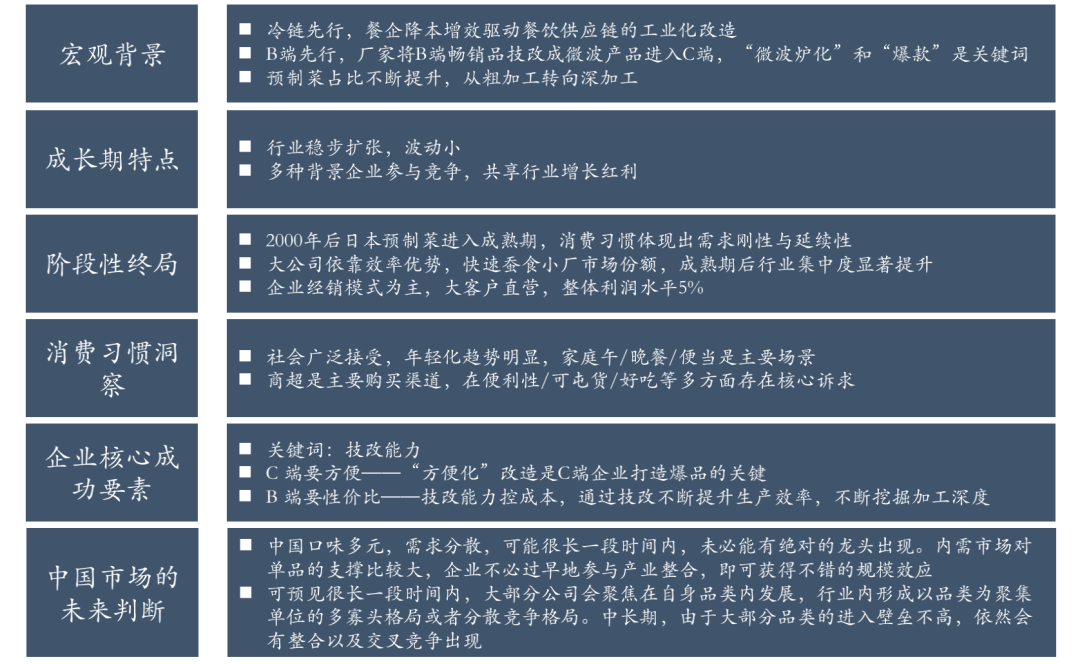 我們認為預(yù)制菜并不是新賽道,而是原有業(yè)態(tài)的一種效率提升,本質(zhì)屬于食品工業(yè)消費升級的范疇。