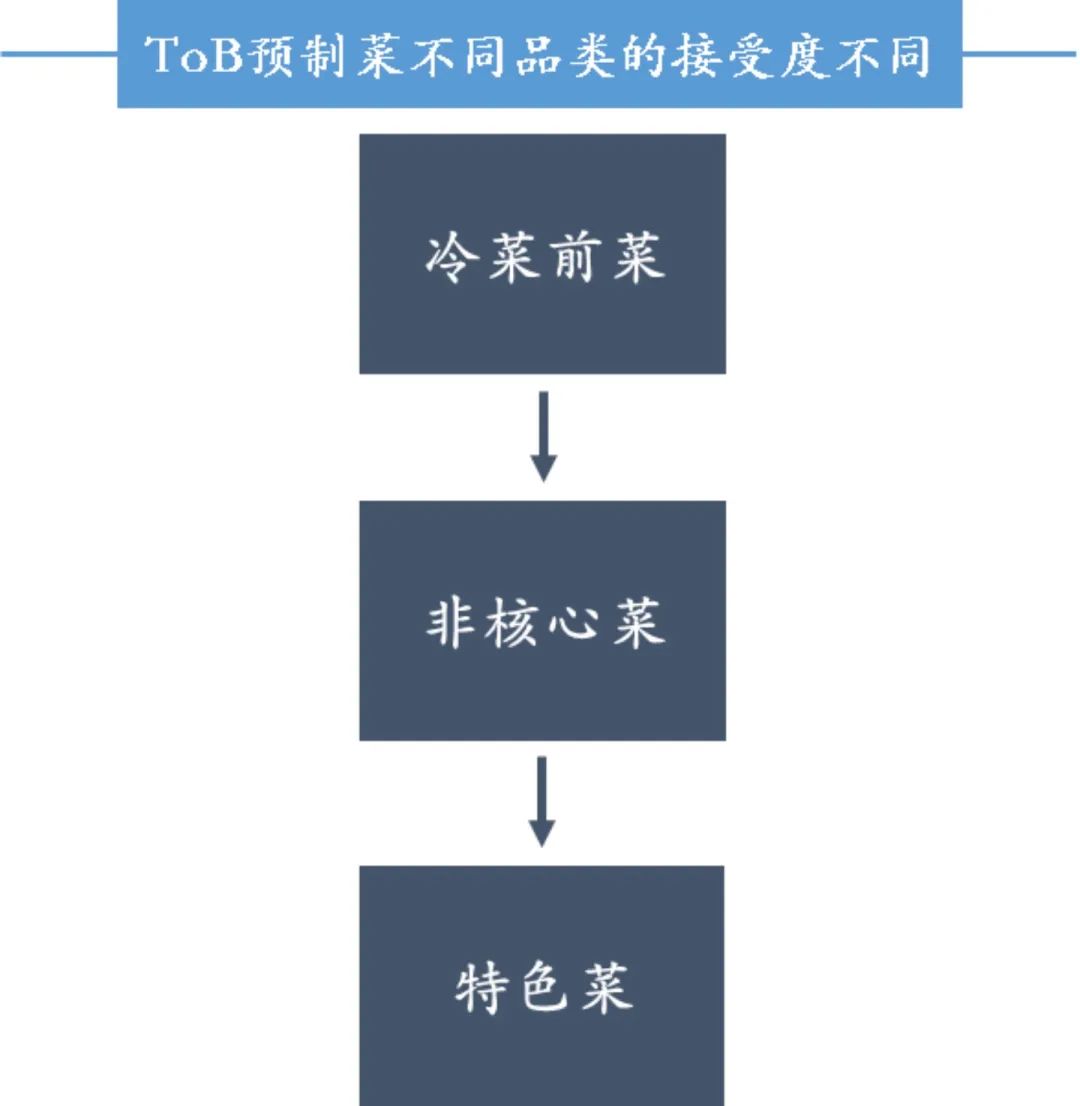 ToB預(yù)制菜的場景很多樣,包括酒店、鄉(xiāng)廚、團餐、外賣等等場景。現(xiàn)階段來看,餐飲下游客戶對于“冷菜前菜”和“非特色菜”在預(yù)制菜的接受度相對更高。一方面是要求出餐快,另一方面是消費者對冷菜前菜和非特色菜的口味敏感度相對低,對非特色菜的口味預(yù)期不會像對特色菜那么高。因此也更適合做預(yù)制菜。以酒店正餐為例,一般菜品結(jié)構(gòu)中,特色菜占比50%,非核心菜30%,冷菜前菜和其他占20%,目前預(yù)制菜在非核心菜和冷菜的這50%里的滲透率會明顯更高。
