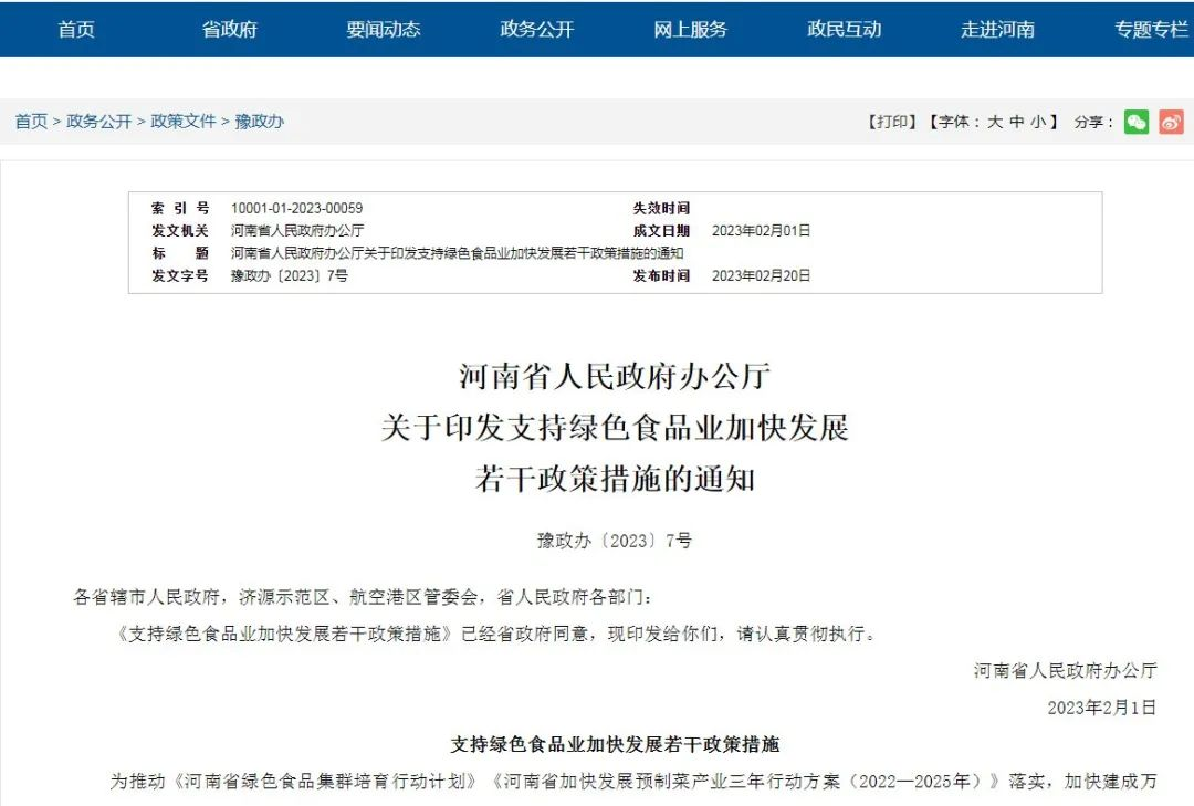 2月20日,河南省人民政府辦公廳發布《支持綠色食品業加快發展若干政策措施》,“真金白銀”支持綠色食品業發展,加快建成萬億級現代食品集群。