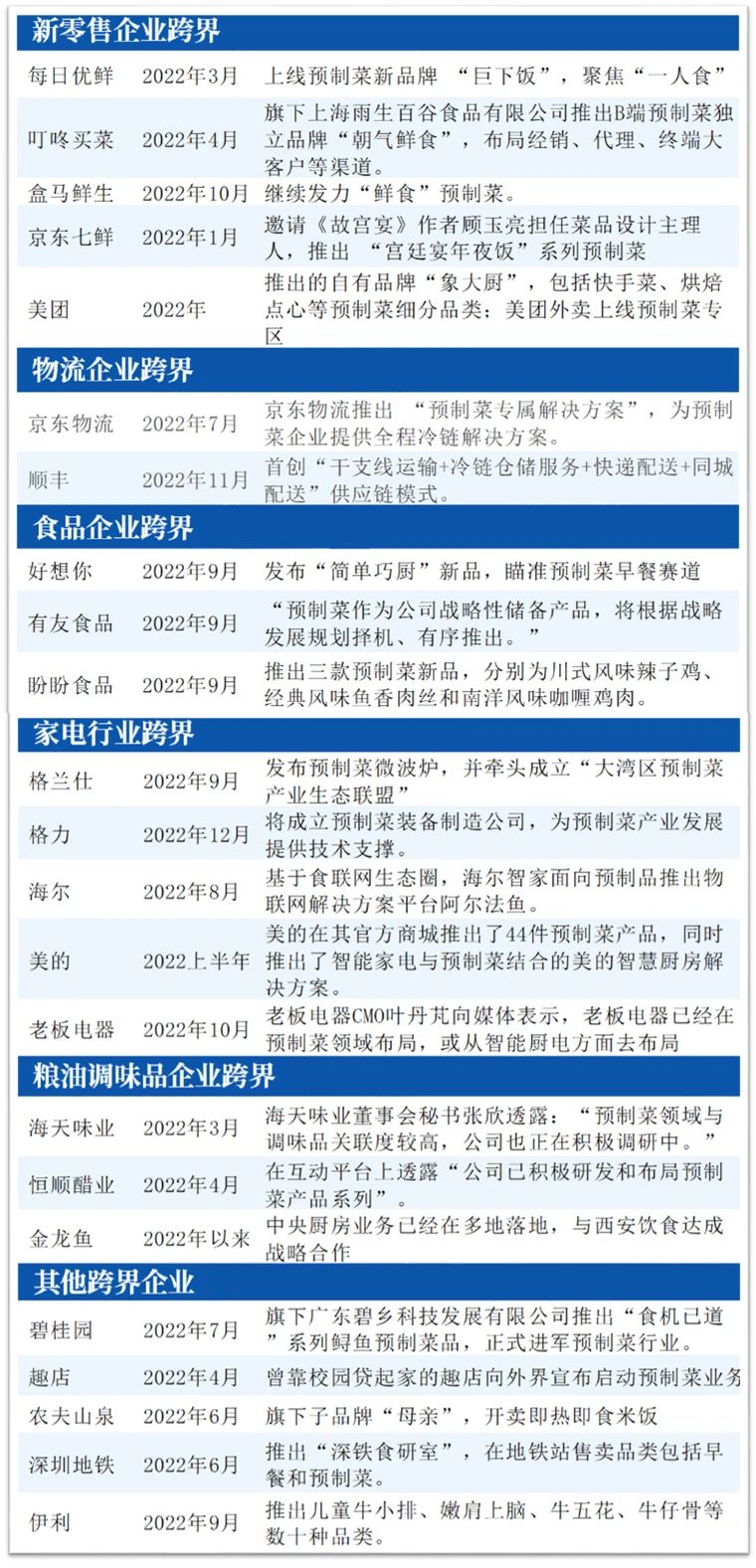 新零售、物流、食品、家電、糧油調味、房地產、飲料等賽道企業紛紛花式入局,為預制菜產業添了一把“大火”。百度指數顯示,2022年,“預制菜”相關搜索同比上漲877%!