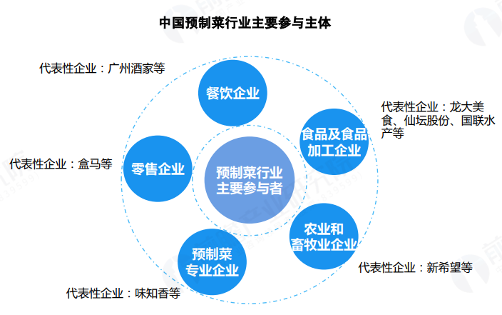 預制菜賽道愈發火熱,眾多行業企業紛紛入局其中。目前,中國預制菜行業主要參與主體為餐飲企業、食品及食品加工企業、農業和畜牧業企業、零售企業,以及專業的預制菜企業。這些企業均處于預制菜產業鏈中的一環,這些參與主體各具發展預制菜的相關社會資源,在業務轉型至預制菜時具有相應的資源和產業鏈優勢,使得入局門檻較低又具有較大市場空間的的預制菜行業競爭愈發激烈。