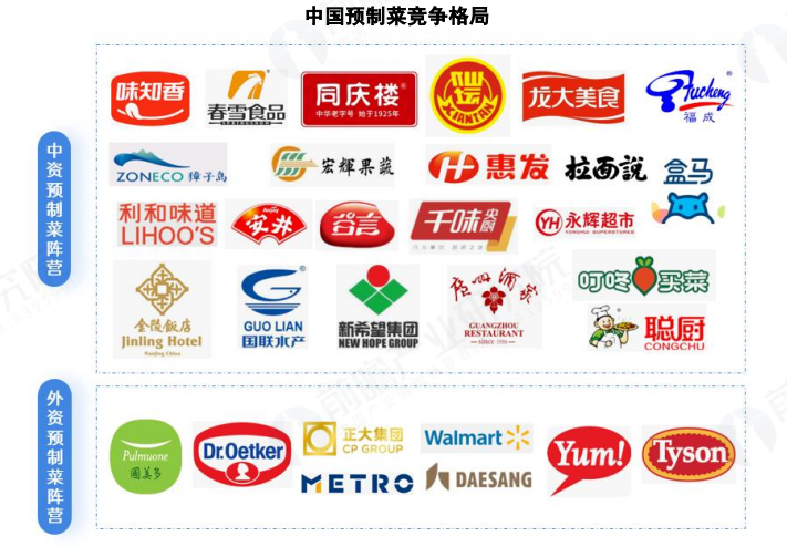 目前,中資預制菜陣營企業眾多,且其預制菜各具特色;外資預制菜陣營主要為境外的頭部食品及食品加工企業、專業預制菜企業、商超企業等等。中國預制菜企業之間競爭激烈,而外資陣營企業避開本地化政策,主要進軍中國預制菜企業較為薄弱的細分市場,例如西式/韓式/日式預制菜品、凈菜等細分品類。