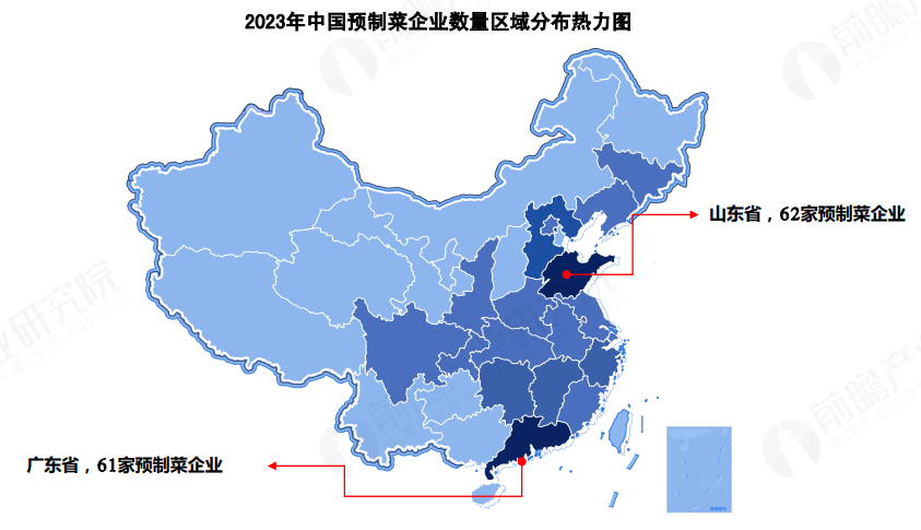 截至2023年2月16日,中國預制菜產業企業數量約301個,整體來看,中國預制菜產業企業數量處于較少水平。其中,山東省和廣東省的預制菜產業企業數量相對較多,在兩地注冊的預制菜產業企業分別有62家和61家。從中國預制菜區域企業數量分布情況來看,中國預制菜產業發展較為集中,行業競爭也在部分地區相對激烈。