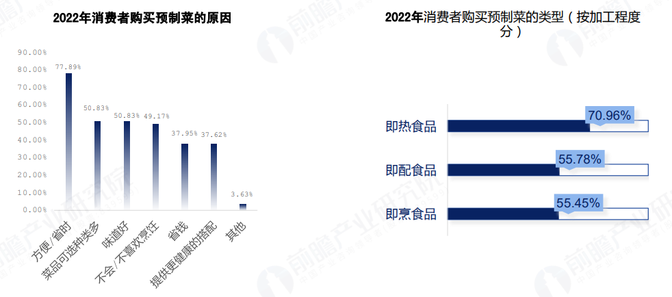 2022年,中國消費者為更方便快捷地用餐購買預制菜,有77%參與調查的消費者為了方便省時地制作餐食選擇購買預制菜,且有較多的消費者在購買預制菜時選擇了即熱食品,或因該類食品具有更高的加工程度,只需加熱即可。