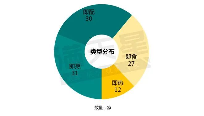 百強企業(yè)按類型分布來看,即烹類型預制菜企業(yè)數量最多,為31家,其中安井、西貝等占據榜單領先位置。