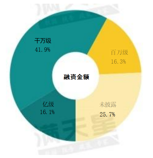 從融資輪次來看,融資輪次在A輪及以前的融資項目占比最高,為51.8% ,B輪及B+輪融資項目占比為19. 4% ,C輪及C+輪融資項目占比3.1% , D輪及D+輪融資項目占比6.7% , 其他融資項目占比19% 。