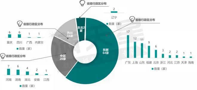 從預制菜百強企業(yè)省(自治區(qū)、直轄市)分布來看,廣東、上海、山東分布數量較多,分別為17家、12家和11家。