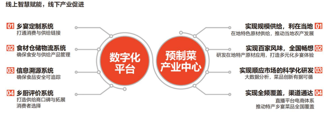 面對(duì)日益增長(zhǎng)的預(yù)制菜產(chǎn)業(yè),好食材致力于建設(shè)集食品研發(fā)、供應(yīng)鏈、中央廚房、鄉(xiāng)廚培訓(xùn)、品牌孵化、數(shù)字化管理于一體的預(yù)制菜標(biāo)準(zhǔn)化產(chǎn)業(yè)平臺(tái)企業(yè),將研發(fā)創(chuàng)新理念充分應(yīng)用于中國(guó)鄉(xiāng)村宴席預(yù)制菜標(biāo)準(zhǔn)化生產(chǎn),打造全新且完善的預(yù)制菜產(chǎn)業(yè)生態(tài)。
