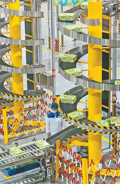 陜西咸陽市清河食品工業園區,一家乳業公司的生產車間內,自動化生產線正在對乳制品進行打包作業。