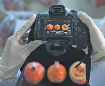 安徽農業科學院園藝研究所石榴創新團隊成員在給石榴拍照。近年來,該團隊聚焦產業需求,創新育種技術,培育出鮮食、加工、觀賞等不同系列的石榴種質資源,為鄉村振興貢獻科研力量。