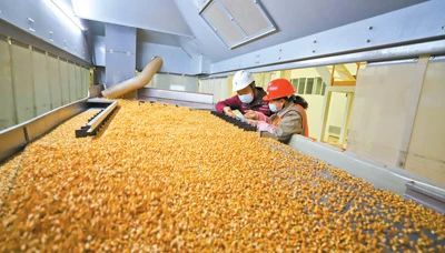 甘肅張掖市一家種業公司,工作人員在玉米良種加工精選機前查看種子加工情況。當地玉米種子加工企業開足馬力生產優質良種,為春耕春播做好準備。