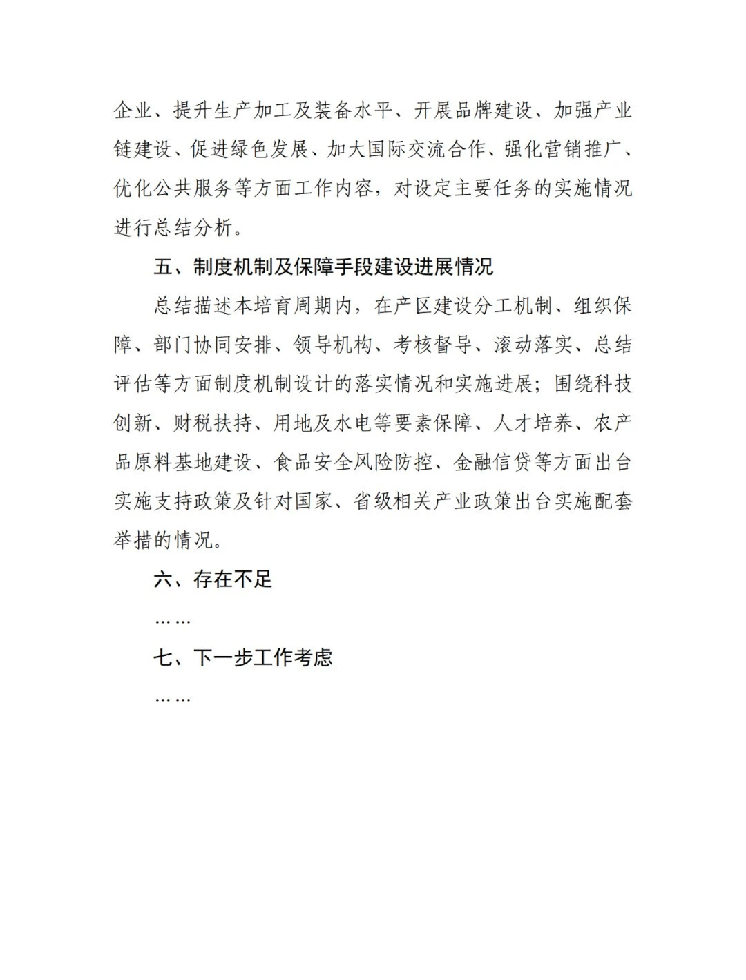 開展復評工作時,由產區(產業)申請單位提交復評材料,包括近3年建設工作自評估報告(模板見附件3)、《傳統優勢食品產區和地方特色食品產業重點培育名單申請書》、新一輪3年周期的《傳統優勢食品產區和地方特色食品產業培育工作方案》。