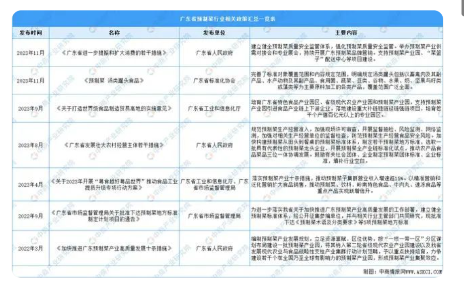 廣東省加快布局預制菜產業,挖掘預制菜市場潛力,加快推進預制菜園區建設,培育11個預制菜產業園。具體如下: