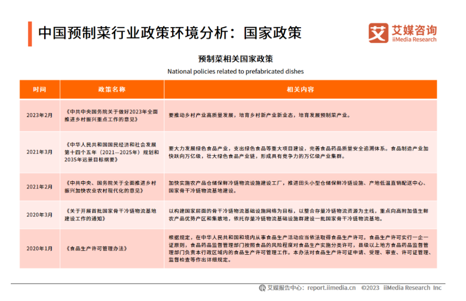 中國(guó)預(yù)制菜行業(yè)政策環(huán)境分析:國(guó)家政策