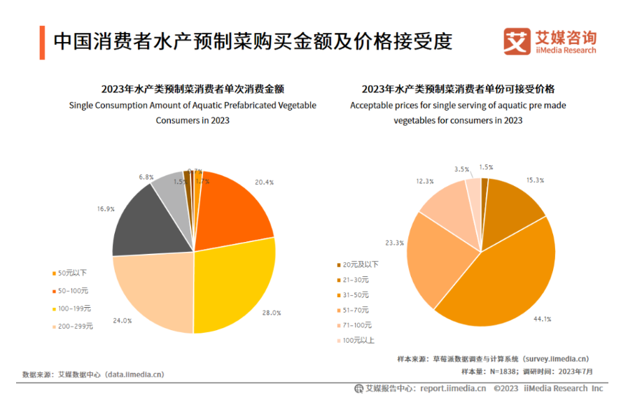中國(guó)消費(fèi)者水產(chǎn)預(yù)制菜購(gòu)買金額及價(jià)格接受度