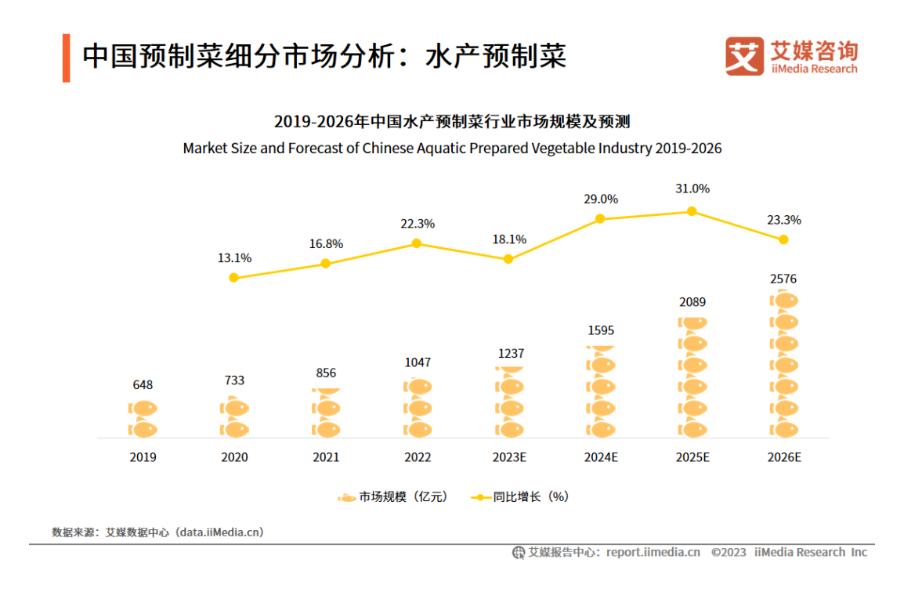 iiMedia Research(艾媒咨詢)數(shù)據(jù)顯示,2022年中國(guó)水產(chǎn)預(yù)制菜行業(yè)規(guī)模為1047億元,同比增長(zhǎng)22.3%,預(yù)計(jì)2026年水產(chǎn)預(yù)制菜市場(chǎng)規(guī)模將達(dá)2576億元。隨著人們飲食的多元,消費(fèi)結(jié)構(gòu)的升級(jí),水產(chǎn)預(yù)制菜市場(chǎng)將持續(xù)擴(kuò)大規(guī)模。