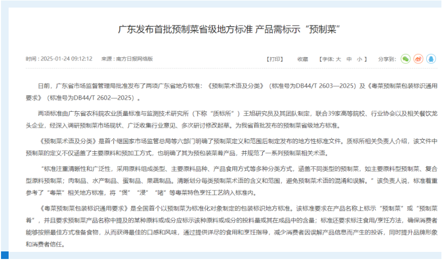 深圳市已將預制菜地方標準提上日程,2024年起,民進廣東省委員會提出建立粵港澳大灣區(qū)標準,2025年,深圳市龍華區(qū)政協(xié)委員馬振軍提出建立地方標準,規(guī)范預制菜的術語與品類,指導行業(yè)良性發(fā)展,為全國性標準提供實踐參考。在標準制定的過程中,《國民經濟行業(yè)分類》通過同質性原則、層級編碼和動態(tài)調整機制,為行業(yè)邊界界定提供科學依據(jù),支撐政策制定、市場分析及國際交流,是地方標準制定的核心工具之一。同時,產業(yè)統(tǒng)計監(jiān)測則有利于規(guī)范企業(yè)經營同時,實時掌握企業(yè)更新動態(tài),精準定位行業(yè)龍頭,加強政企聯(lián)系,共同推動行業(yè)標準的制定和優(yōu)化。