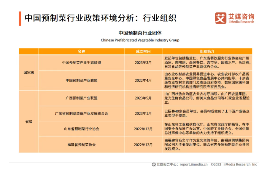 中國預制菜行業政策環境分析:行業組織