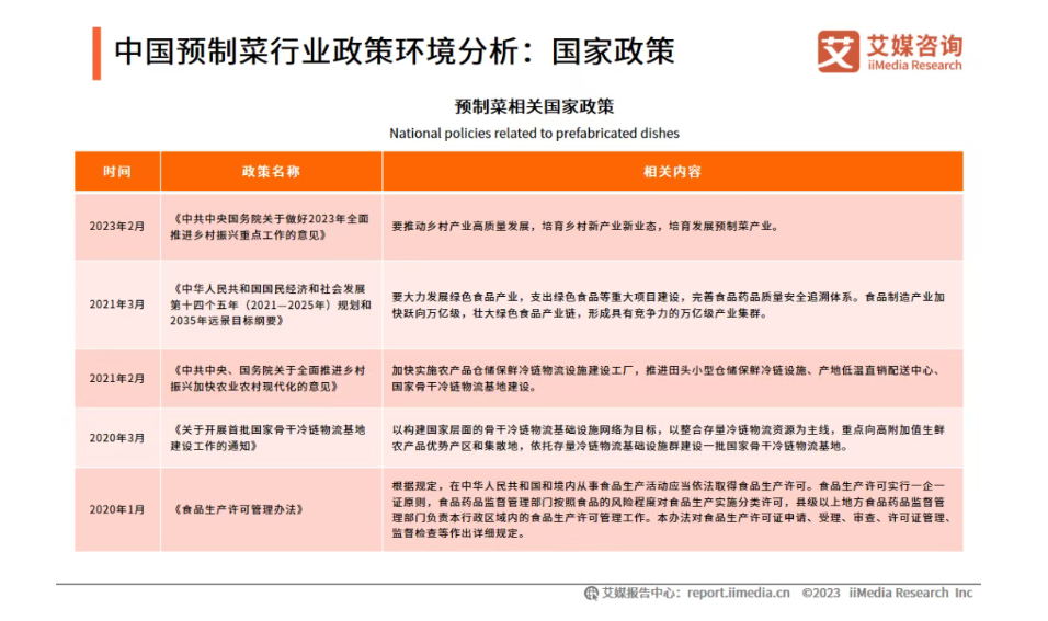 中國預制菜行業政策環境分析:國家政策