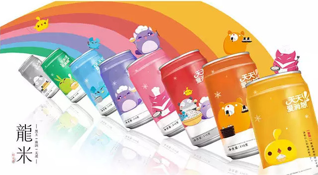 同時,龍米通過和王老吉的合作,通過改造生產線,改造計量、漏斗、罐裝、沖氮、壓蓋等,來進行易拉罐真空包裝,每罐是一個家庭一天的用量,打造7+1概念(一周七日,一日一罐,加一罐彩蛋),從星期一到星期日,每罐包裝皆不同,“一熊、二鹿、三鷹、四虎、五貂、六鶴、七松鼠”。