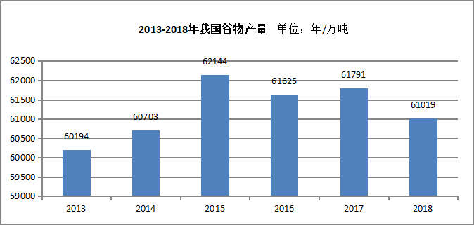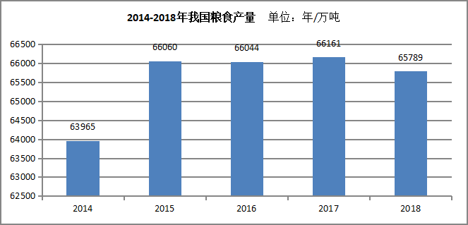 2018年我國糧食等農產品再獲豐收,各類農產品總量達到21億多噸。如2018年我國糧食再獲豐收,實現“十五連豐”,實現連續六年糧食產量超過6億噸,中國糧食生產、流通、消費進入一個新的歷史階段。全國糧食總產量65789萬噸(13158億斤),比2017年減少371萬噸(74億斤),下降0.6%。其中谷物產量61019萬噸(12204億斤),比2017年減少502萬噸(100億斤),下降0.8%。