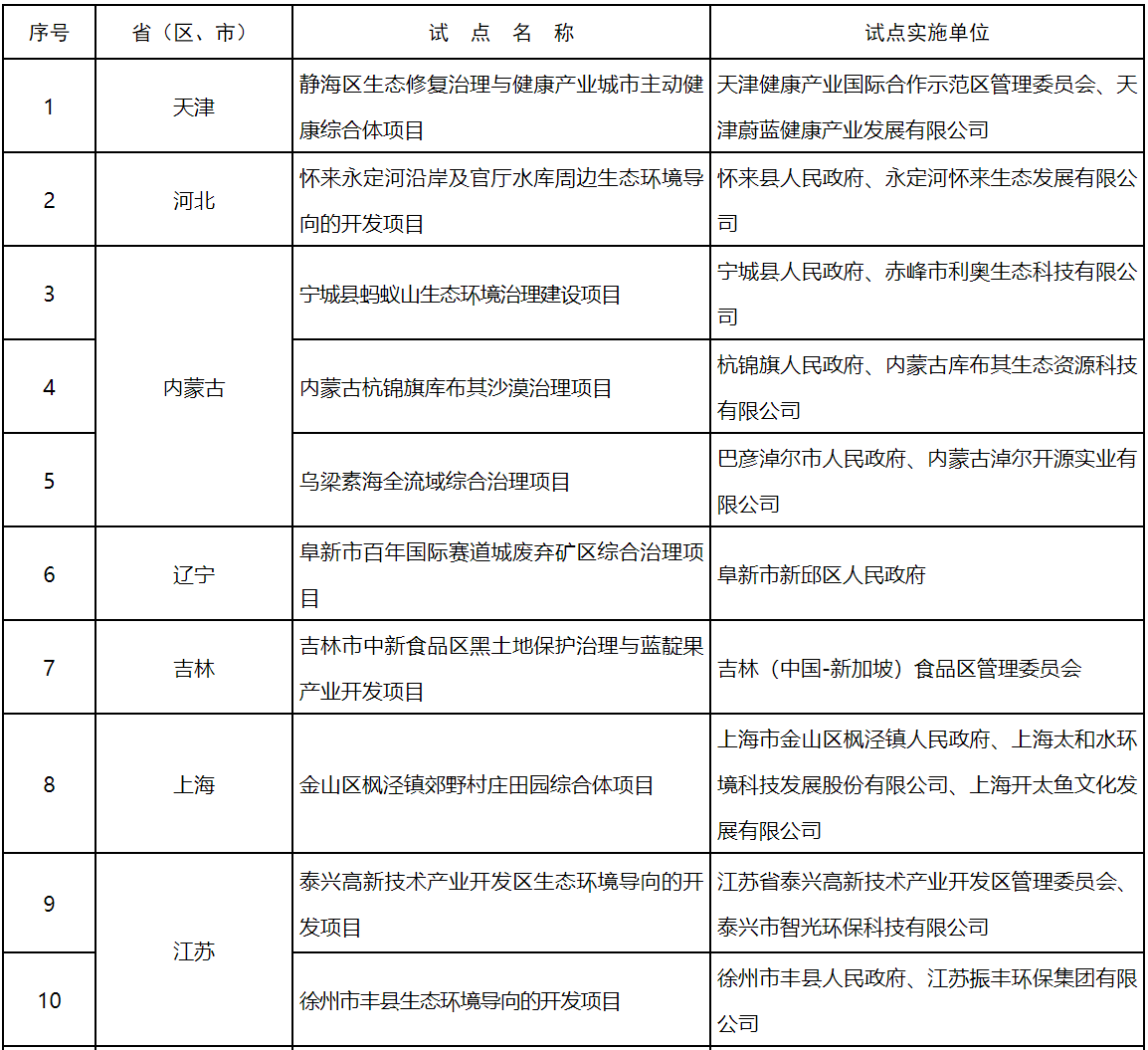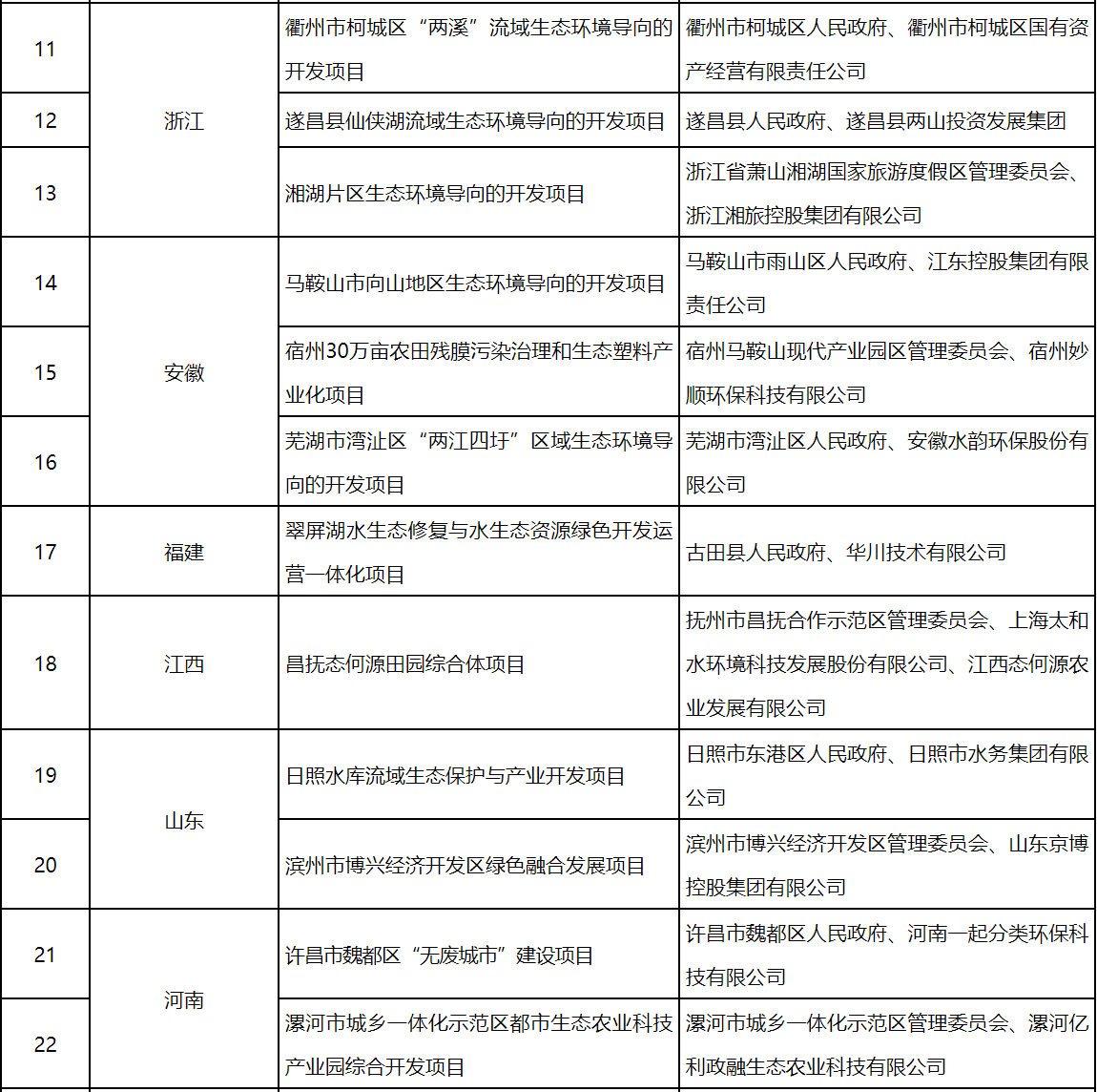 附:2021年生態(tài)環(huán)境導向的開發(fā)(EOD)模式試點項目名單