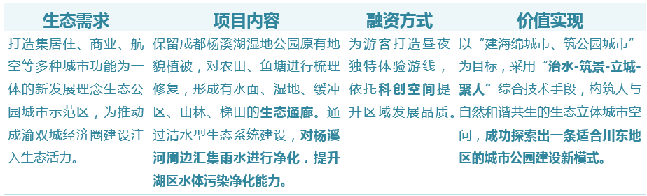 這些案例均是創(chuàng)新拓展生態(tài)價值方面的溢價,打造區(qū)域內(nèi)EOD模式的項目標桿與樣板。