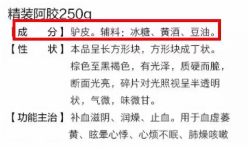 我們來看看1公斤售價8600元的精裝阿膠的成分表: