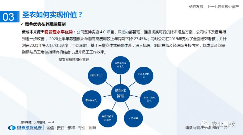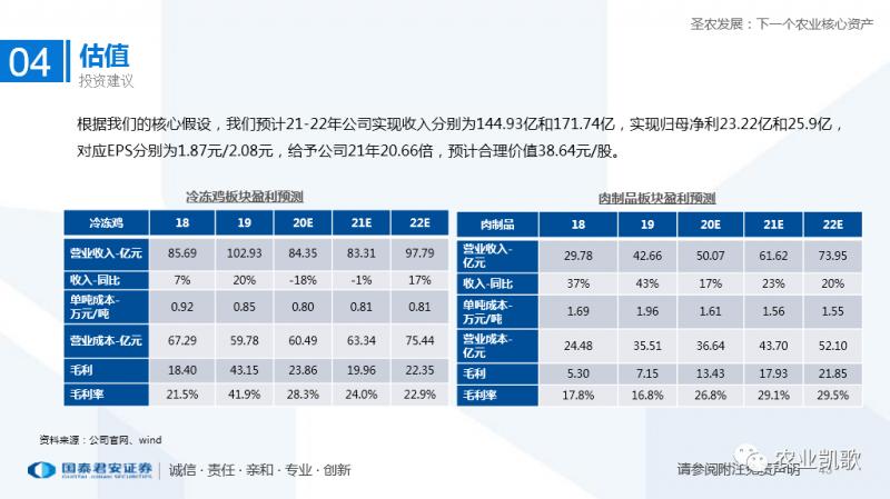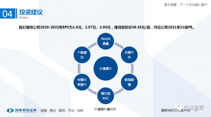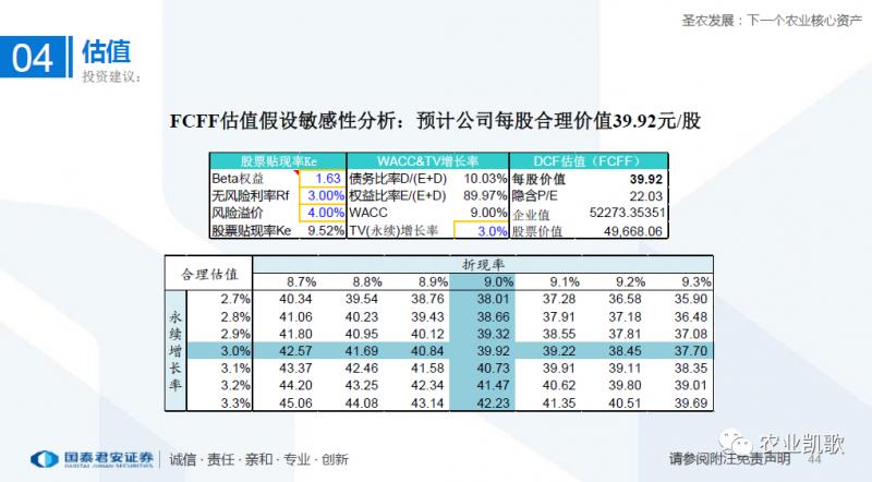 布局下一個農業核心資產。根據奧森模型,企業價值來自競爭優勢以及復制,我們認為,公司的競爭優勢突顯,并將通過產能、下游客戶集中度提升拉動、價值鏈向食品延伸三方面復制競爭優勢,獲得企業價值長期增值,根據絕對估值法估值,給予公司“增持”評級,目標價39.28元。