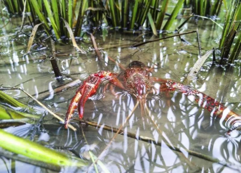 每到插秧時節,這里的蝦農們把尚在幼苗期的小龍蝦移至溝內生長,等秧苗長結實了,再把溝里的幼蝦引回到稻田里。這樣做,三四五月份收一季蝦,八九月份又收獲一季蝦,這就是“一稻兩蝦”。