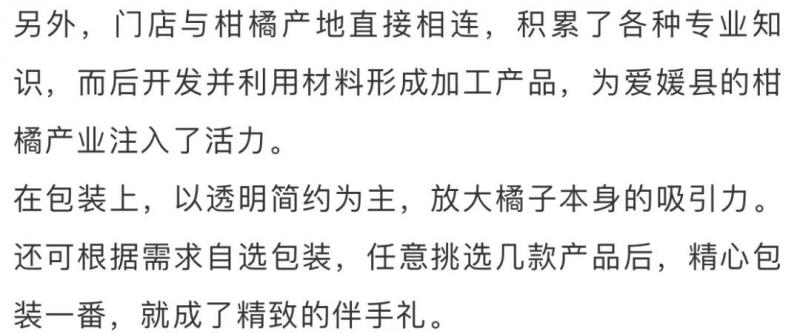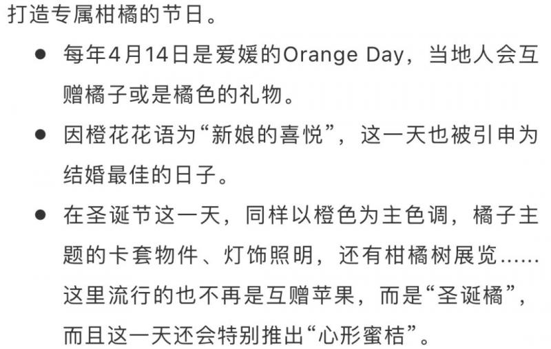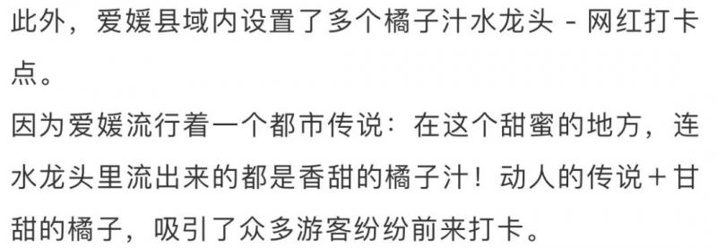 日本通過小小的橘子,以極低的成本將愛媛大名營銷到全球,又通過愛媛旅游,促進了愛媛柑橘的消費。