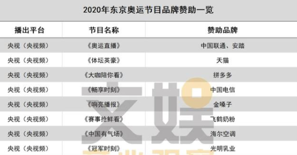 成為媒體奧運會節目的贊助商或合作伙伴,比如,央視2020年東京奧運會推出了40多檔奧運節目,吸引了上百家企業或品牌贊助;