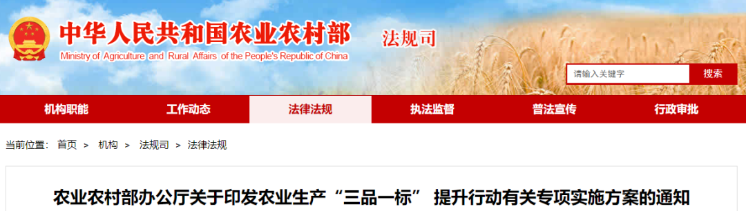 農業農村部辦公廳關于印發農業生產“三品一標” 提升行動有關專項實施方案的通知