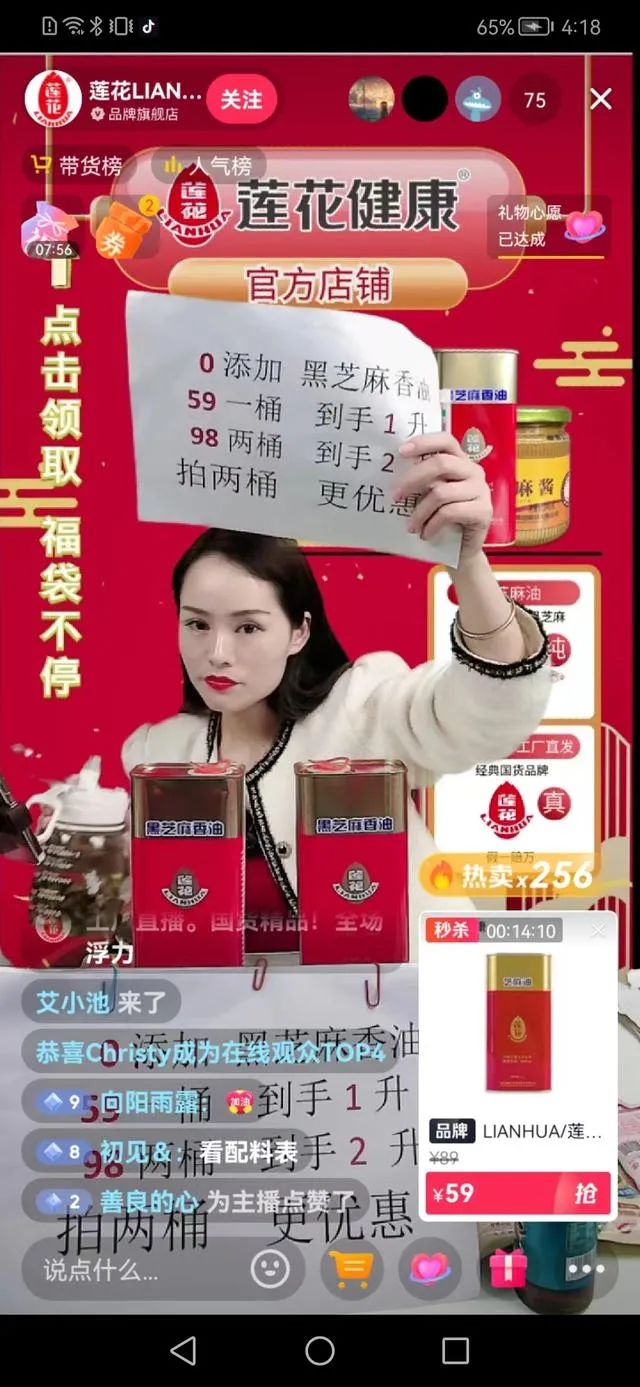 “是純糧釀造嗎?”“配料表是啥?”“主要成分是小麥嗎?”10月14日下午,貝殼財經(jīng)記者在蓮花健康的抖音直播間里觀察了兩個小時,觀看總?cè)藬?shù)維持在50人至200人之間,評論區(qū)里,多次有人提問蓮花味精的配料表,主播也積極回應(yīng)稱“是純糧釀造”,同時,直播間銷售的產(chǎn)品除了蓮花味精之外,還有黑芝麻油、陳醋等,賣點(diǎn)均為“0添加”。