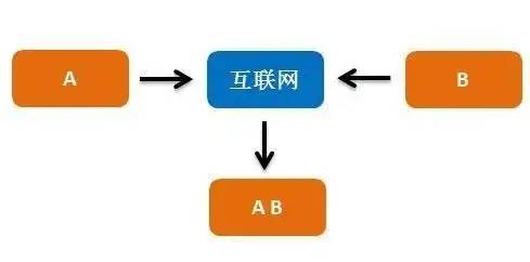 AB都是已經存在的個體,互相不知道對方需求,通過互聯網連接AB(滴滴)。