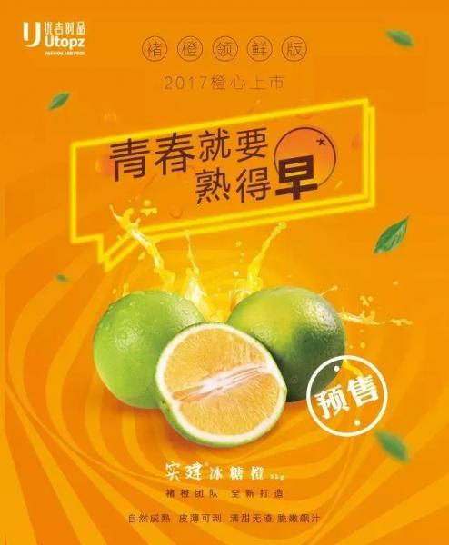 實建橙的文案:青春就要熟的早!寓意著現(xiàn)在的年青人,要更早的承擔責任。