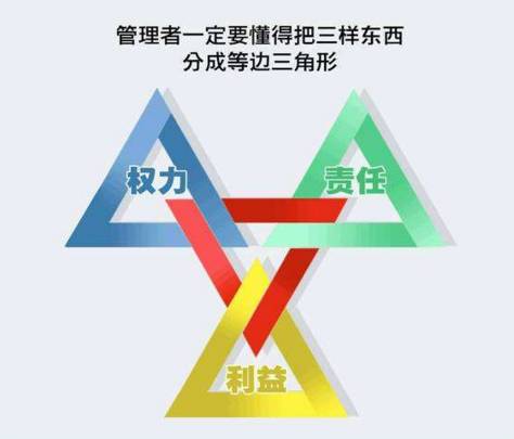 管理者一定要懂得把三樣東西分成等邊三角形:即權力、責任、利益三角對等。